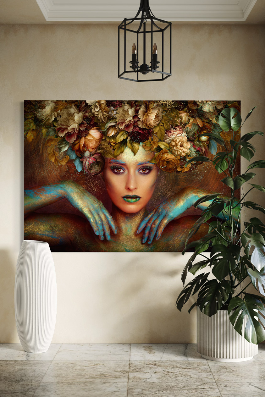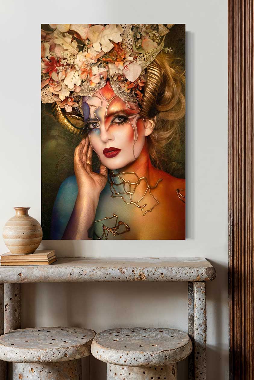 € 74,00 - € 489,00Prijsklasse: € 74,00 tot € 489,00Omgeven door weelderig groen en gekroond met bloemen straalt dit portret een magische sereniteit uit. Dream Forest Girl vangt de mystieke connectie tussen mens en natuur.