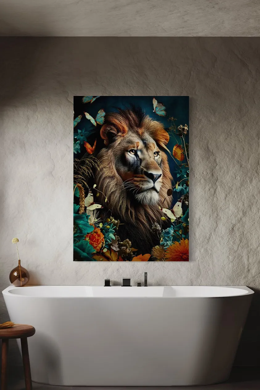 € 74,00 - € 489,00Prijsklasse: € 74,00 tot € 489,00Breng kracht en elegantie samen aan je muur met dit adembenemende plexiglas of dibond schilderij van een majestueuze leeuw, omringd door een weelderige flora en vlinders. De combinatie van de stoere uitstraling van de leeuw en de zachte, kleurrijke bloemen en vlinders zorgt voor een uniek en krachtig statement in je interieur.