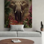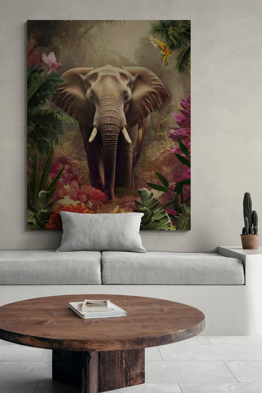 Breng de kracht en wijsheid van de natuur in huis met dit indrukwekkende kunstwerk van een tropische olifant.